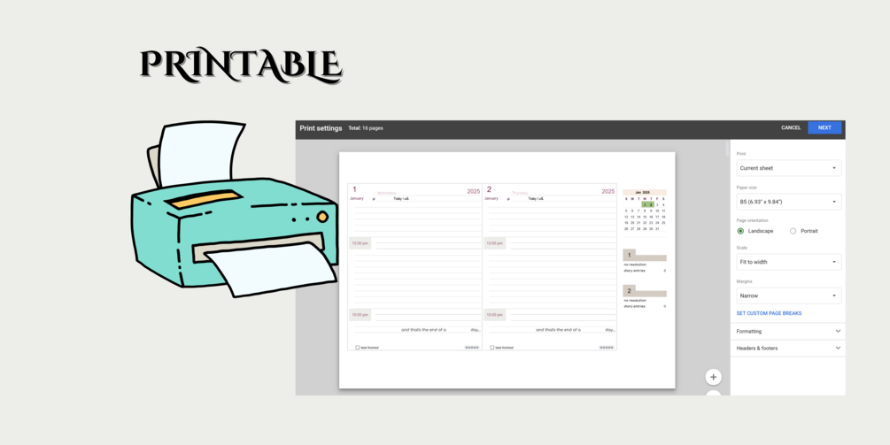 Designed with both digital and offline users in mind, the diary is printable-friendly. Export and print your entries to create a physical keepsake of your memories or progress.