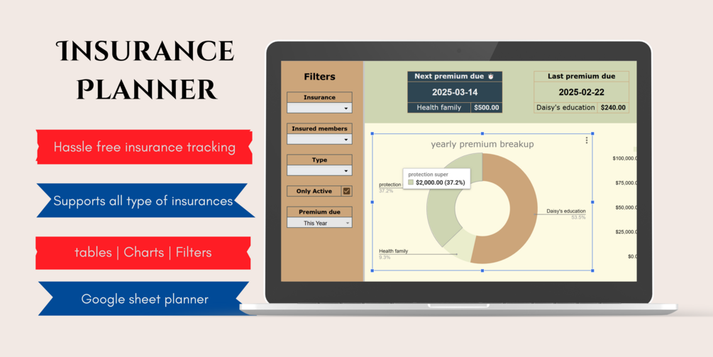 Managing multiple insurance policies can be overwhelming. From tracking premiums and due dates to understanding long-term financial commitments, keeping everything organized is crucial. Our Insurance Planner & Tracker Google Sheet is designed to simplify insurance management, ensuring you never miss a payment while providing a clear overview of your policies.