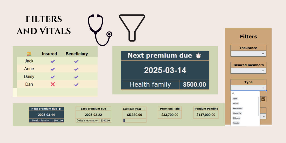 Whether you're managing health, life, motor, children's education, or retirement insurance, this powerful tool helps you structure, track, and analyze your policies efficiently—all in one place.