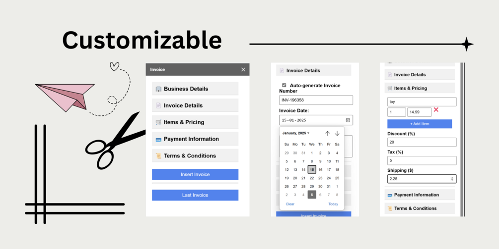 Customizable & Scalable – Modify the invoice template and layout to match your brand and specific business needs.