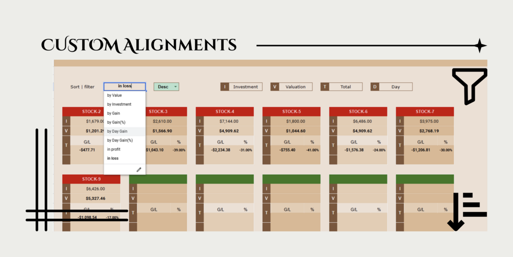 - Filter and Sort Dropdown: Organize your portfolio based on various parameters like performance, profit, or valuation for deeper insights.